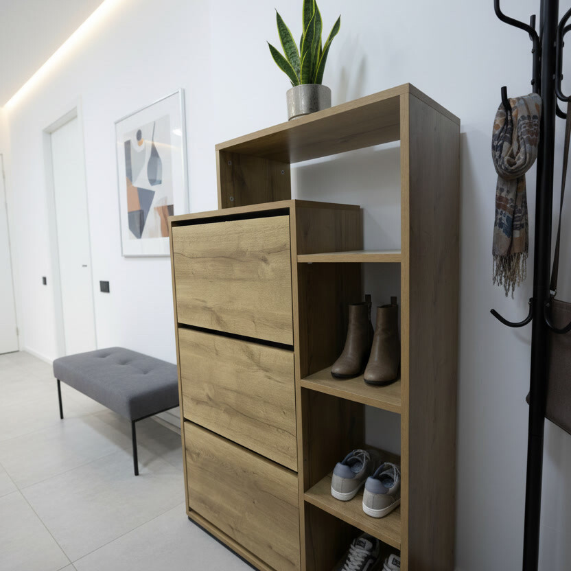 Porte-chaussures moderne, design élégant et pratique, idéal pour organiser votre entrée. Doté de plusieurs compartiments spacieux et d’un espace de rangement optimisé, il combine fonctionnalité et style pour un intérieur chic et ordonné.