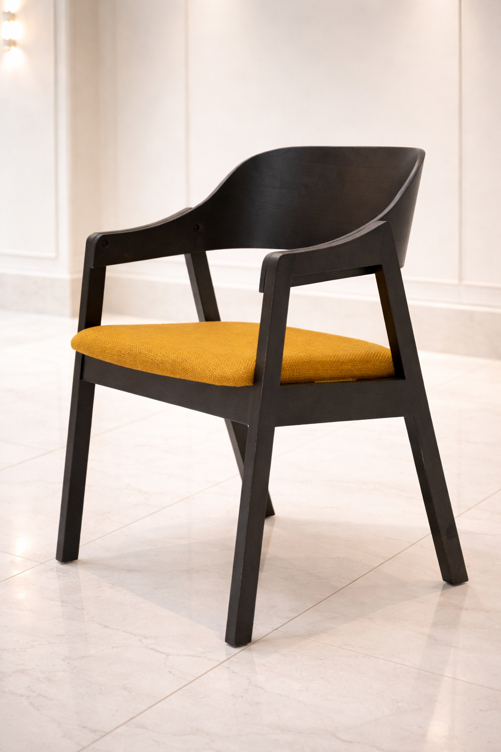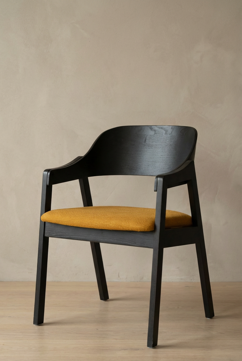 Découvrez Galaxy, votre nouvelle chaise scandinave tendance au design épuré, aux lignes sobres et galbées. Un dossier et des accoudoirs enveloppants en bois massif, une assise rembourrée avec un revêtement en tissu.