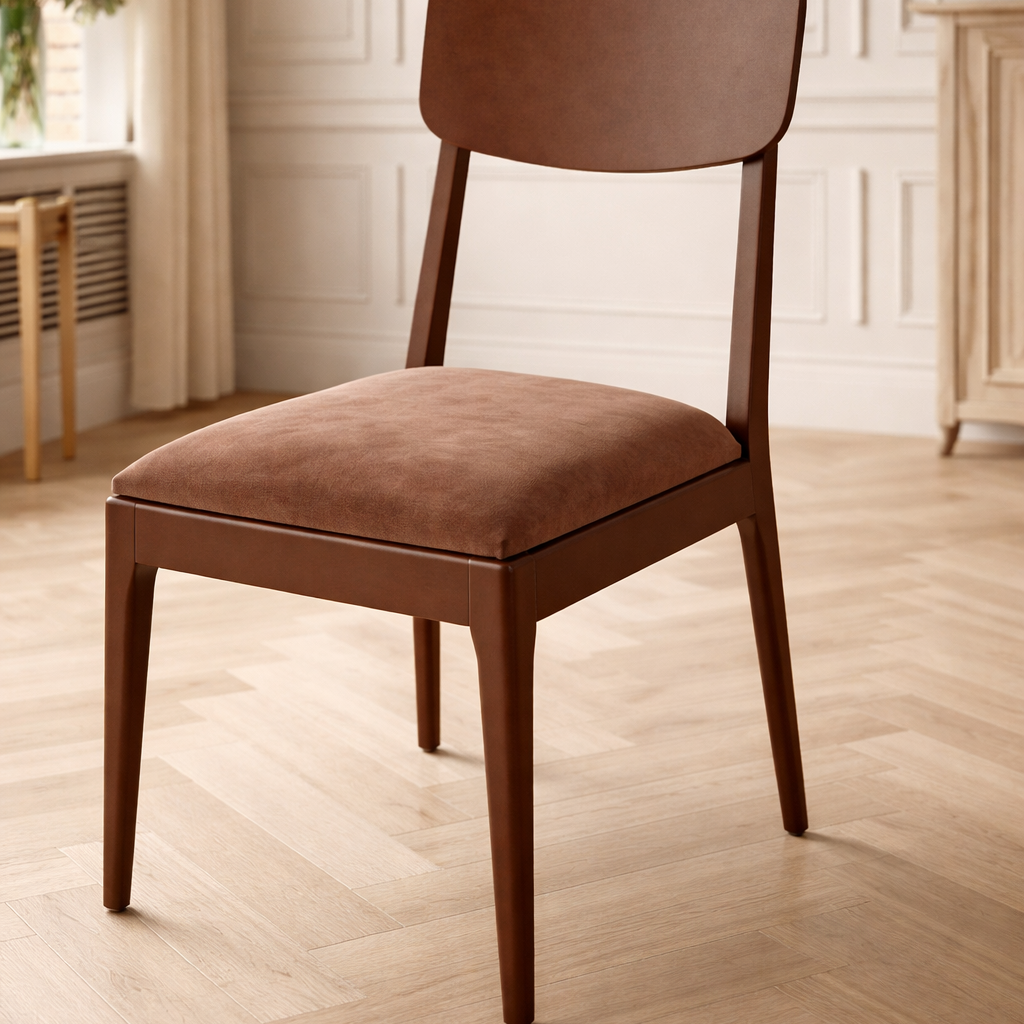 chaise de style scandinave en bois avec une structure de couleur naturelle. il faut choisir le dossier et l’assise en peinture ou en tissu.