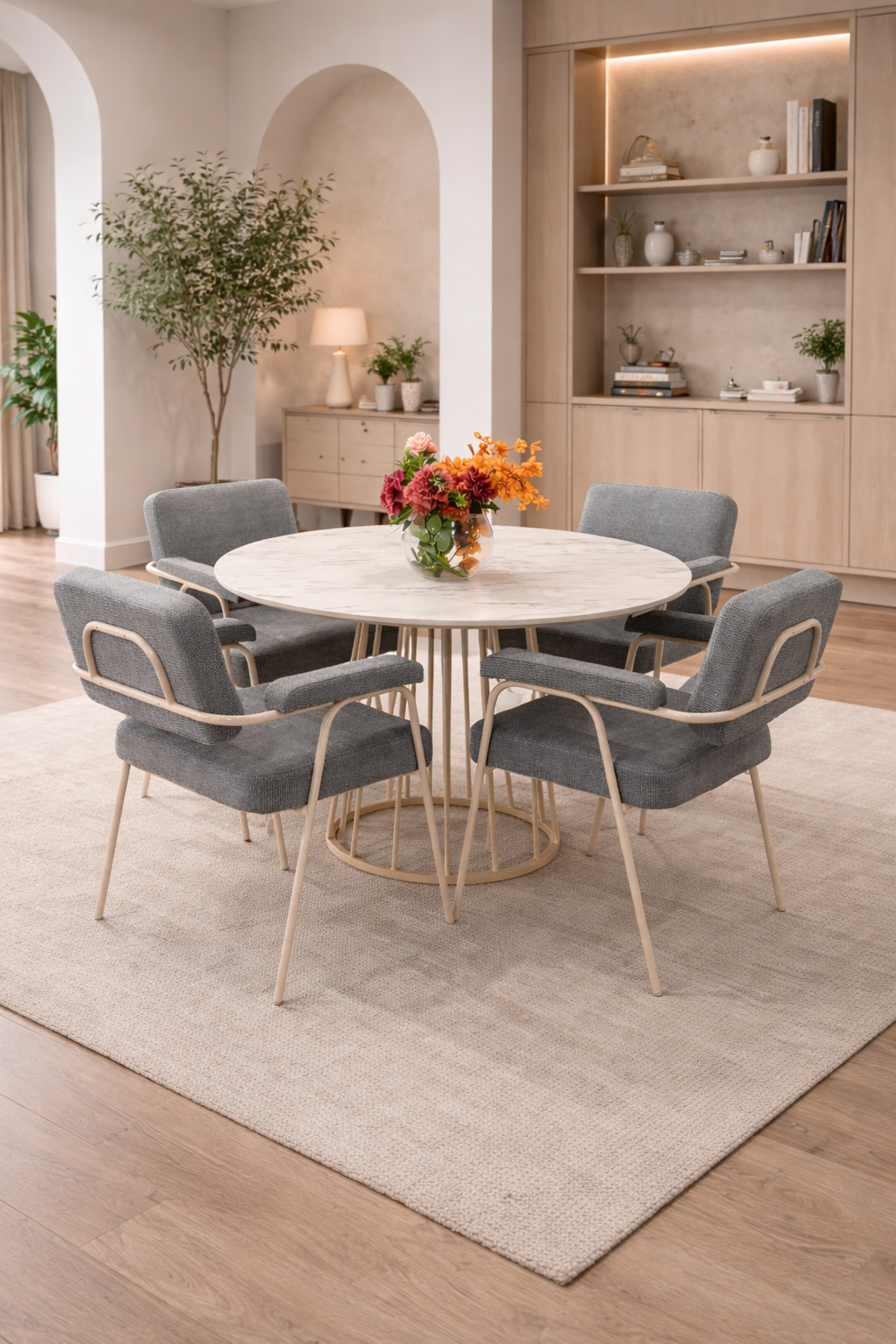 Son format rond favorise la convivialité et le partage autour du repas.
