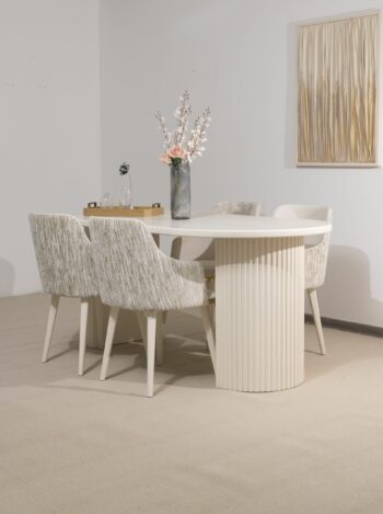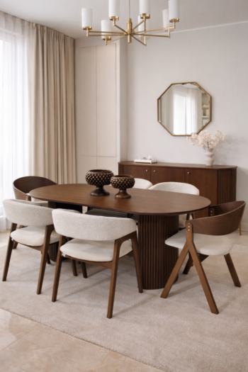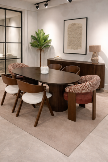 Associée à des chaises élégantes, la table Camilia s’impose comme une pièce centrale chaleureuse et contemporaine.