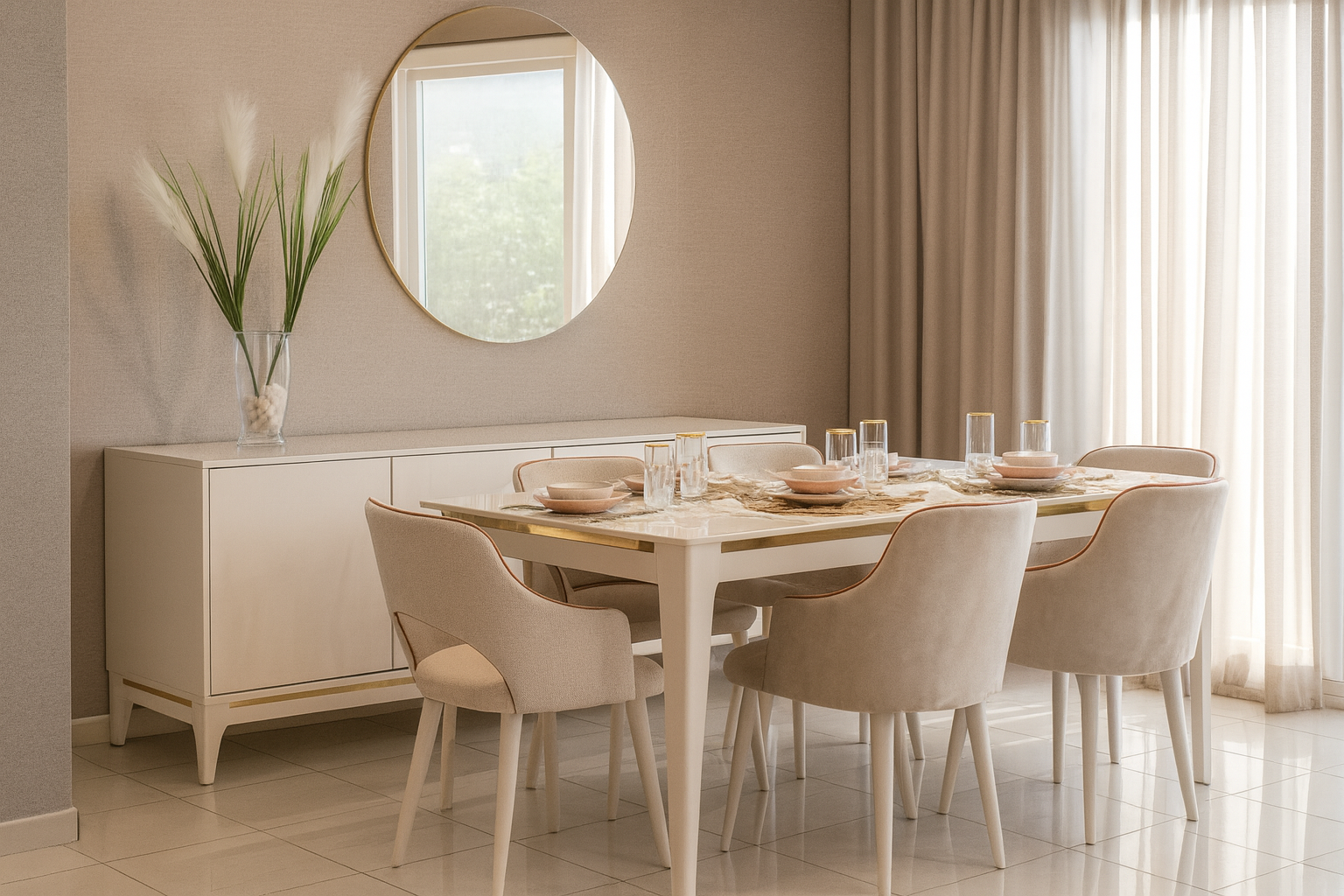 Spacieuse, lumineuse, élégante et conviviale, la table à manger perla