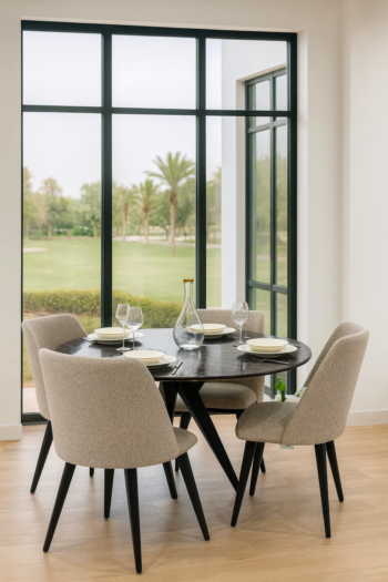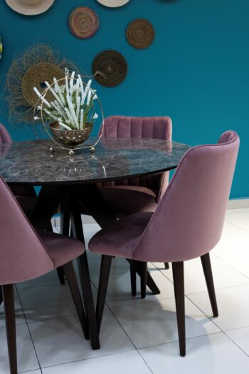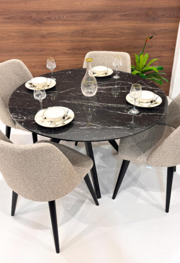 Son plateau rond offre une convivialité parfaite pour vos repas, tout en apportant une touche sophistiquée grâce à sa finition soignée.